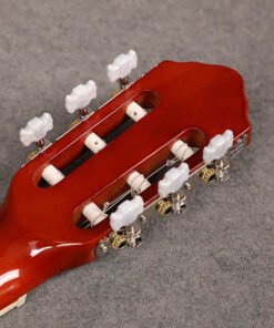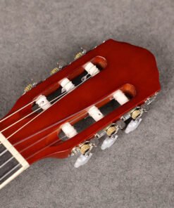 Its fretboard and neck are made of rosewood, ensuring smooth finger movement. This adds comfort while playing chords or melodies. The silver-plated classical string pegs keep the tuning stable and precise. These features help maintain accurate pitch even during extended sessions.